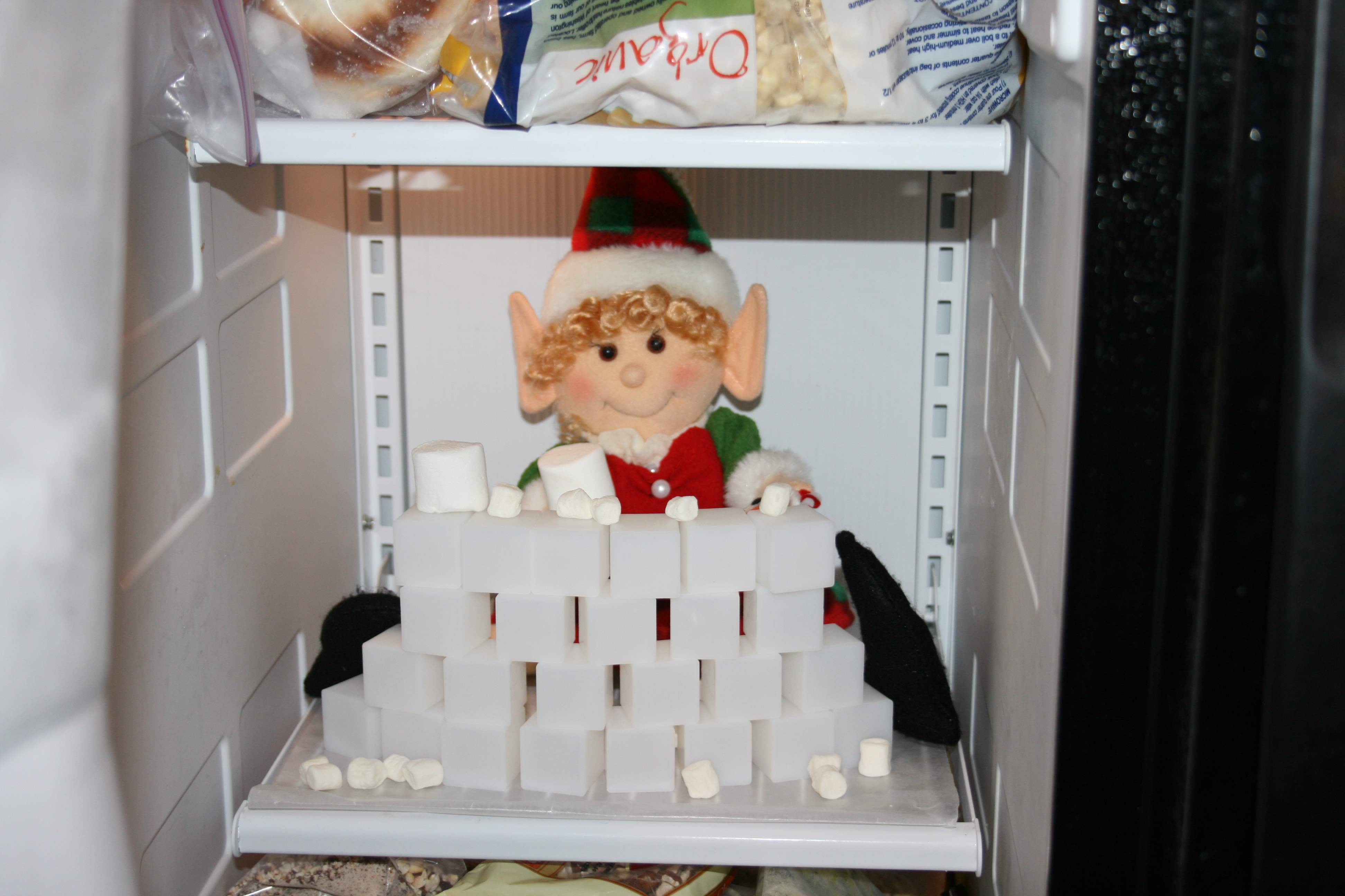 Jingles decided to build a snow fort and have a snowball fight in our freezer.