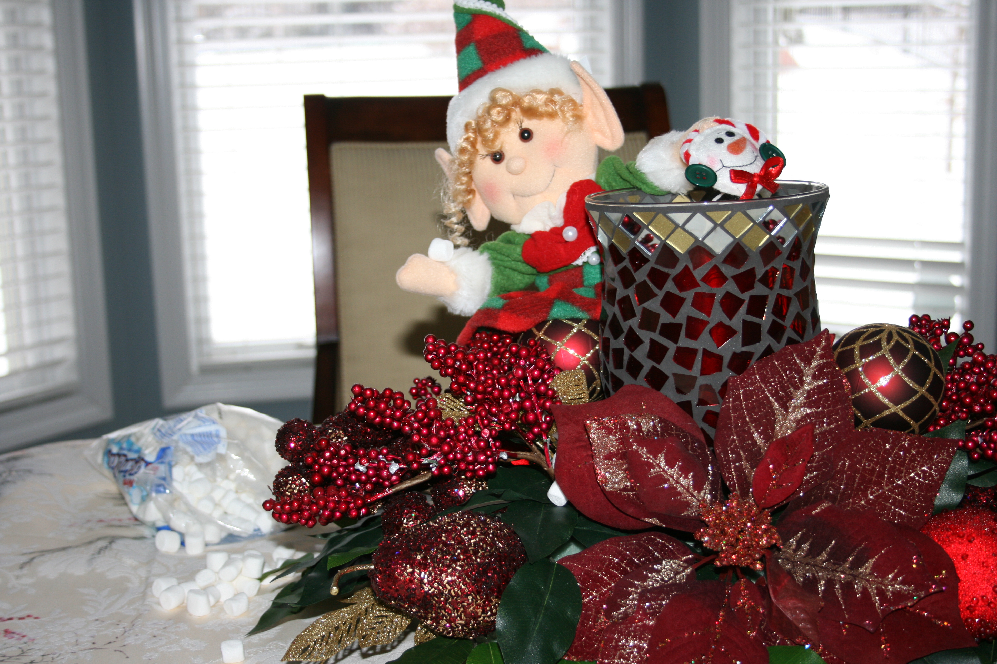 Last night Jingles stole some mini marshmellows from our pantry.